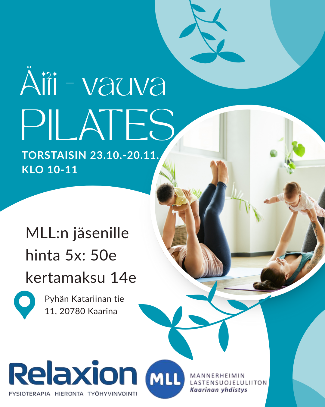 Nyt on jälleen mahdollista osallistua Äiti-vauva pilatekseen. Torstaisin 23.10- 20.11 klo 10-11 Relaxionin ryhmäliikuntatilassa. Sitovat 5 kerran ilmoittautumiset juulia.helin@relaxion.fi ja…