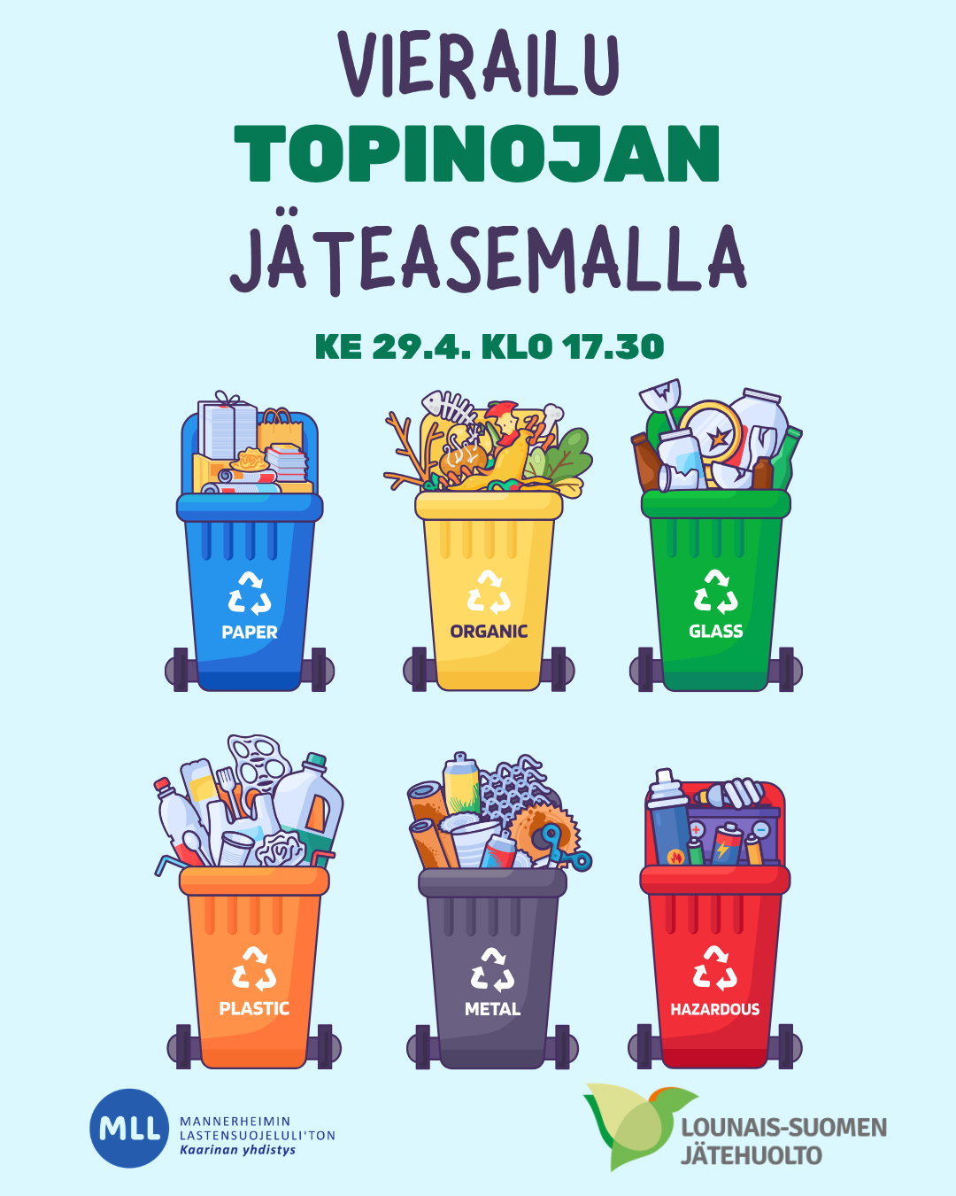 Tervetuloa mukaan tutustumaan Topinojan jätekeskukseen Turun Orikedolle. Vierailun aikana saamme lisätietoa jätekeskuksen toiminnoista ja pääsemme tutustumaan jätteiden lajitteluun, käsittelyyn sekä…