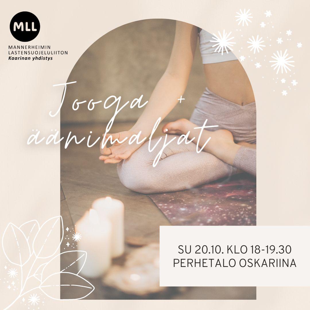 Tervetuloa nauttimaan kehoa hellivästä joogatunnista ja rentouttavista äänimaljoista sunnuntaina 20.10. klo 18-19.30 Perhetalo Oskariinaan. Aikaisempaa kokemusta joogasta sinulla ei tarvitse olla. Ota mukaasi oma matto tai alusta, viltti sekä tyyny.