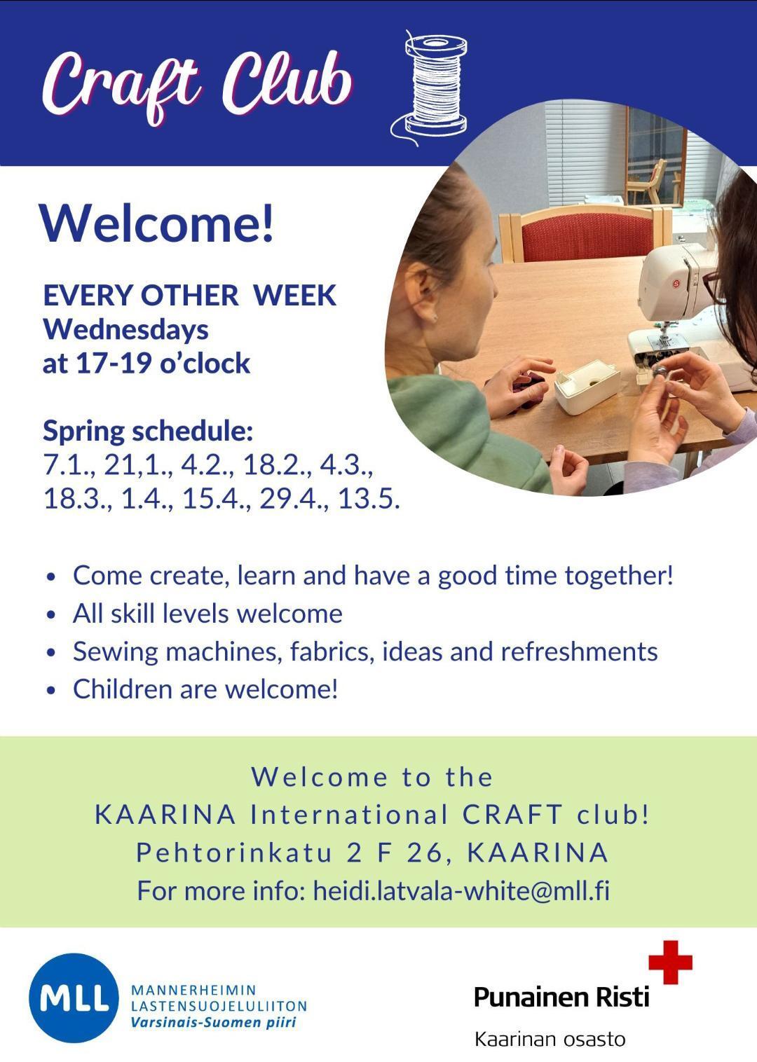 Käsityökerhossa voit viettää mukavan illan ompelemalla, kutomalla, neulomalla, virkkaamalla, tuunaamalla, piirtämällä, askartelemalla… tai ihan vain kahvikupin äärellä jutellen ☕💬