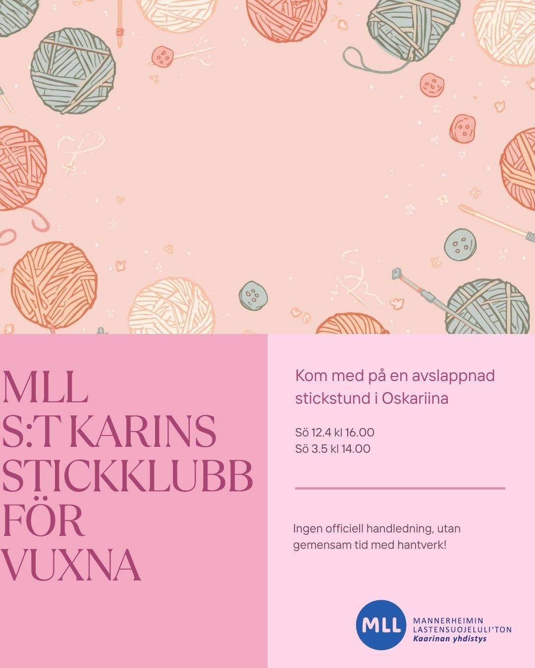 Om det finns fler ivriga stickare kan vi ordna en tredje träff under våren. Det här är en avslappnad stund för gemenskap – ingen officiell stickundervisning. Evenemanget är riktat till vuxna.